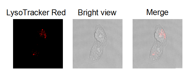 LysoTracker Red探針由一種連接一個(gè)弱堿基的熒光基團(tuán)組成,其中僅弱堿可部分提供質(zhì)子,以維持PH在中性值。這使LysoTracker Red探針能自由無阻地滲透細(xì)胞膜,使其能夠標(biāo)記活細(xì)胞。一般聚集在球形細(xì)胞器上,適用于觀察溶酶體內(nèi)部生物合成及相關(guān)發(fā)病機(jī)理。探針對(duì)酸性細(xì)胞器有高選擇性,與二硝基苯 (DNP)不同,溶酶體紅色熒光探針DND-99探針不需二抗來檢測(cè)。